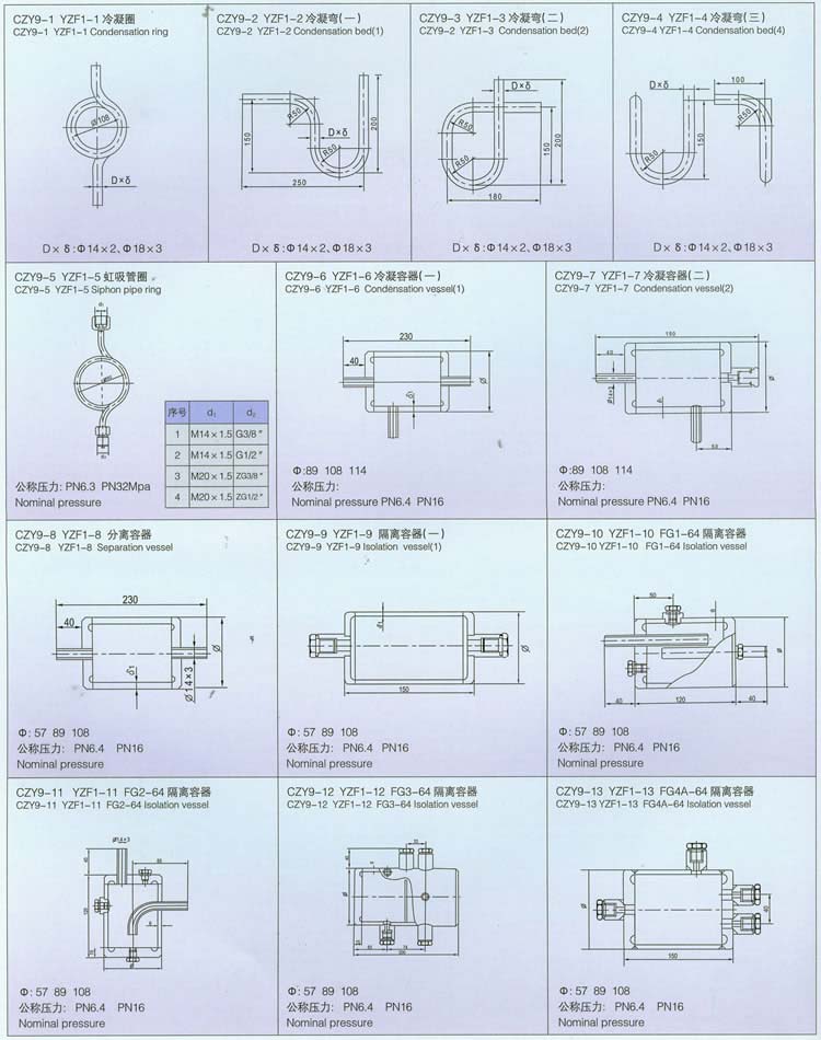 說明(míng):本儀表輔助容(róng)器部分收集了(le)煉油、化工、冶金(jīn)⛹🏻♀️生✍️産中壓力、流(liu)量、液面測量用(yòng)的隔離器、冷凝(ning)器、分離器、除塵(chén)器、液面測量用(yòng)的雙室平衡器(qi)和分析儀表用(yòng)的一些預🛀🏻處理(lǐ)裝♈置以及各種(zhong)冷凝圈、冷凝彎(wān)✂️等産品。容器的(de)制造、試驗和驗(yan)收均按機械部(bu)分鋼制焊接容(rong)器技術條件執(zhi)行。