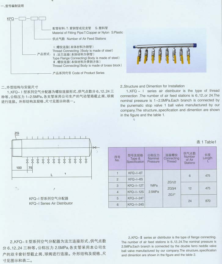 說(shuo)明:本公司生(shēng)産的KFQ系列氣(qì)源分配器,結(jie)構合理、安💰裝(zhuang)方便,它是現(xian)場分散安裝(zhuāng)的氣動儀表(biao)空氣總管相(xiàng)連接的中間(jian)橋梁,空氣分(fen)配器固定安(ān)裝在适當位(wei)置的牆上或(huò)柱子上🤟,由管(guan)架❓上的儀表(biǎo)空氣總管用(yòng)支管将儀表(biao)空氣㊙️送到空(kōng)氣分配器中(zhōng)✂️,然後通過💛空(kong)氣分配器各(gè)閥門用ф6或ф8小(xiǎo)支管将空氣(qi)送至分配器(qì)附近的各用(yong)氣儀表中。其(qí)中KFQ-Ⅰ型/KFQ-Ⅱ型下端(duan)設有♌排污閥(fá),可定期👨❤️👨将空(kong)氣中的冷🌈凝(ning)水從中排出(chū),以免水分帶(dai)入氣動儀表(biao)内影像儀表(biǎo)正常工作。